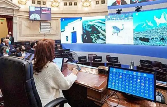 La presidenta de la Cámara alta, Cristina Kirchner, dio inicio a la sesión con el quórum de 71 senadores presentes (uno menos que el pleno), 33 de ellos conectados desde organismos públicos de sus provincias, 21 en domicilios particulares y 17 desde sus despachos en el palacio legislativo.
