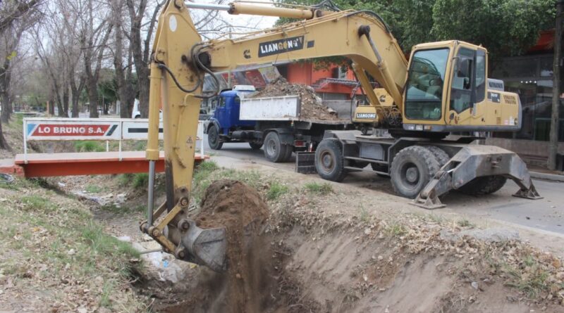 La tarea se concentra en la limpieza de las alcantarillas y de toda la sección a lo largo del canal. Trabajan máquinas retroexcavadoras, camiones volcadores e interviene personal del Departamento de Desagües de la Dirección de Obras Públicas.