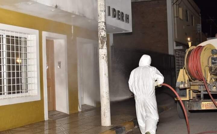 En la tarde noche del pasado sábado personal de Obras y Servicios Públicos de la Municipalidad de Frías realizó un importante operativo de desinfección en lugares públicos de mayor concurrencia de personas.