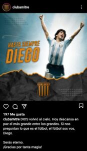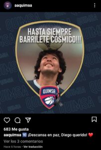 Los clubes representativos de la provincia, tanto en fútbol como en básquet, recordaron  Diego Maradona a través de las redes sociales.