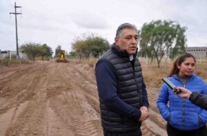 El intendente Roger Nediani visitó la obra de aporte de suelo y base estabilizada en alrededor de mil metros lineales sobre el denominado “Camino del Vivero” desde el barrio Independencia con salida hacia la Ruta Provincial N° 11.