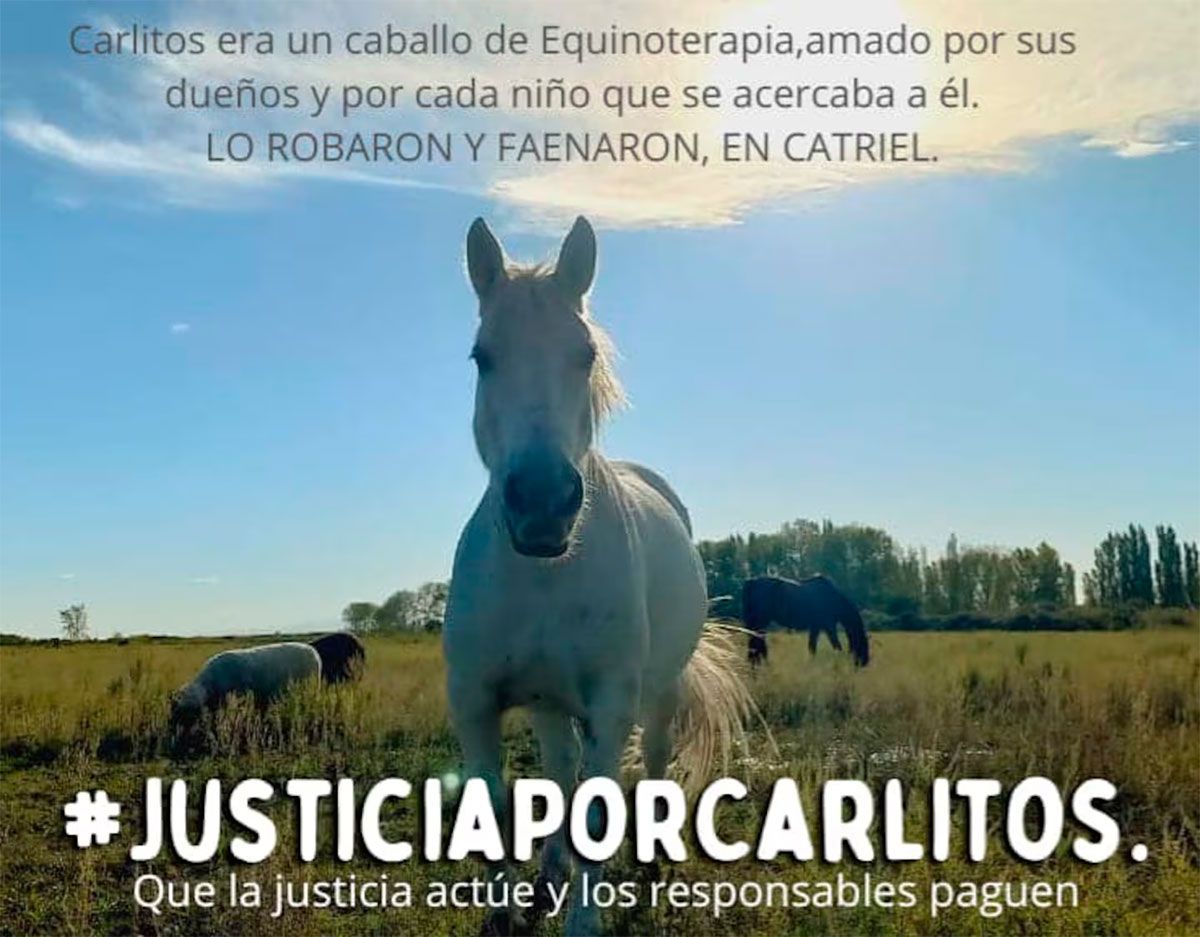 Carlitos tenía 16 años y comenzó a ser utilizado en tratamientos de equinoterapia desde que tenía 6. El pasado martes se lo llevaron y desde la asociación temían que podía ocurrir lo peor con él, por eso, a través de sus redes sociales hicieron un pedido desesperado: “Lo robaron hoy, por favor no lo maten”.
