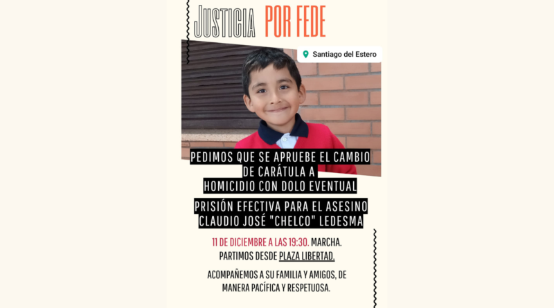 Familiares y amigos de Federico convocaron a una marcha para este miércoles 11 de diciembre a las 19:30, en pedido de Justicia. La concentración partirá desde plaza Libertad, en el centro de la capital provincial.
