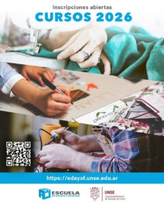 El próximo 𝗹𝘂𝗻𝗲𝘀 𝟵 𝗱𝗲 𝗳𝗲𝗯𝗿𝗲𝗿𝗼, la Escuela de Artes y Oficios de la UNSE abrirá las 𝐢𝐧𝐬𝐜𝐫𝐢𝐩𝐜𝐢𝐨𝐧𝐞𝐬 𝐩𝐚𝐫𝐚 𝐬𝐮 𝐨𝐟𝐞𝐫𝐭𝐚 𝟐𝟎𝟐𝟔 de cursos y talleres en modalidad presencial y virtual, en sus líneas de formación en oficios, artísticos, de interés general y capacitación docente, con importantes novedades para una rápida inserción en el mercado laboral.