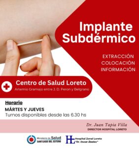 A partir de ahora, se realizará la colocación y extracción de implantes subdérmicos, un método anticonceptivo de larga duración y alta efectividad. El procedimiento se llevará a cabo los martes y jueves por la mañana, y estará a cargo del Licenciado en obstetricia Oscar Leme.
