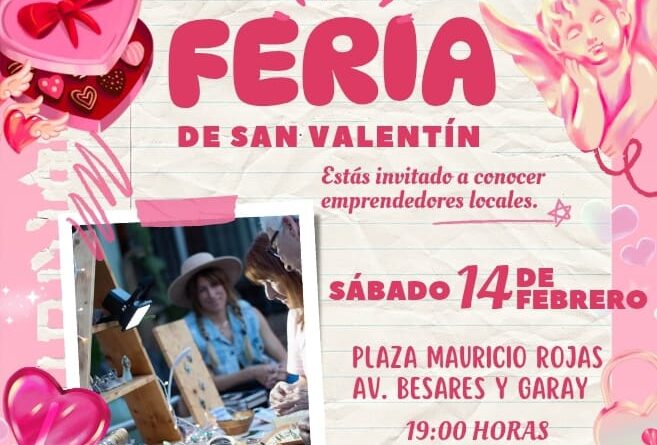 El sábado 14 de Febrero se llevará a cabo la Feria Día de San Valentin en la plaza Mauricio Rojas (Besares y Garay – La Banda) a partir de las 19 hs organizada por el Grupo Wayka junto al Atelier Cultural. La parte artística estará a cargo Tina Latina y Toni Baroni, show de música y humor,y Sin Razones Rock.